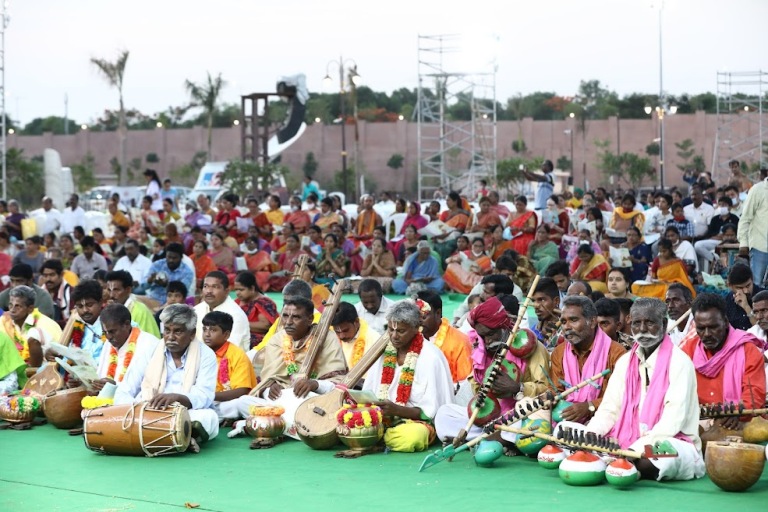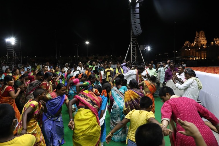 In the evening, Yathiraja Vimsathi was chanted as an effort to collectively learn it and make it part of our prayers to Lord. After all, we are limited by lack of maturity in what to and how to communicate or ask Lord for something. Hence, It is recommended that we take the lead of Manavala Mamuni who composed a prayer enunciating the greatness of Ramanujacharya who has the authority to grace us with the eternal wealth, God’s compassion. The prayer was followed by songs and dances by different groups of people such as haridasas, banjaras, chenchus etc whose ancestors lives’ were inspired with the teachings and guidance of Ramanujacharya.
