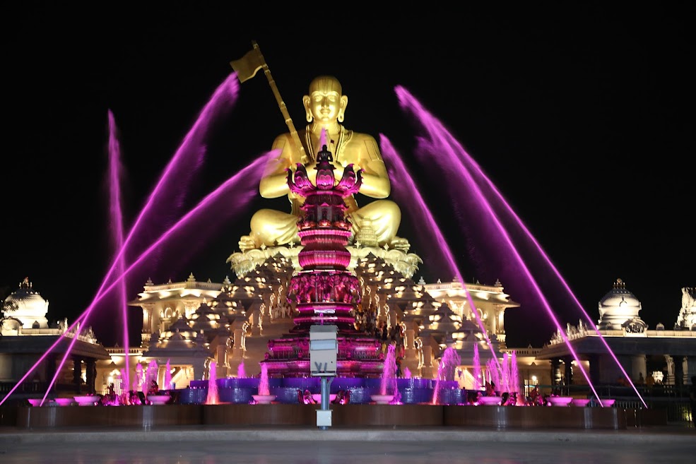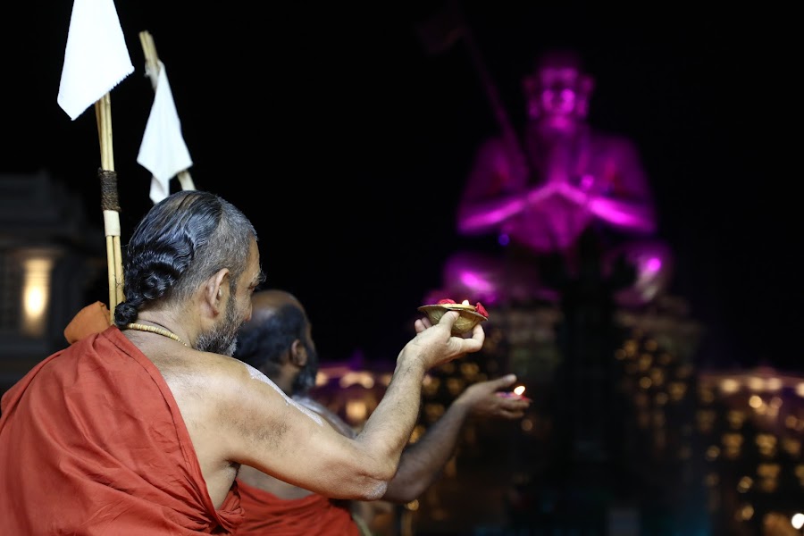 Finally, mangala ha:rathi where each of the ones gathered there held a diya and watched the compassionate form, the 216 foot Samatha Murthy – the Statue of Equality, Bhagavad Ramanujacharya. While the devotees held the diya with reverence and love for acharya, the dancing water fountain with music and lights offered waters of gratitude and love (Leela jala neerajanam) to Ramanujacharya..